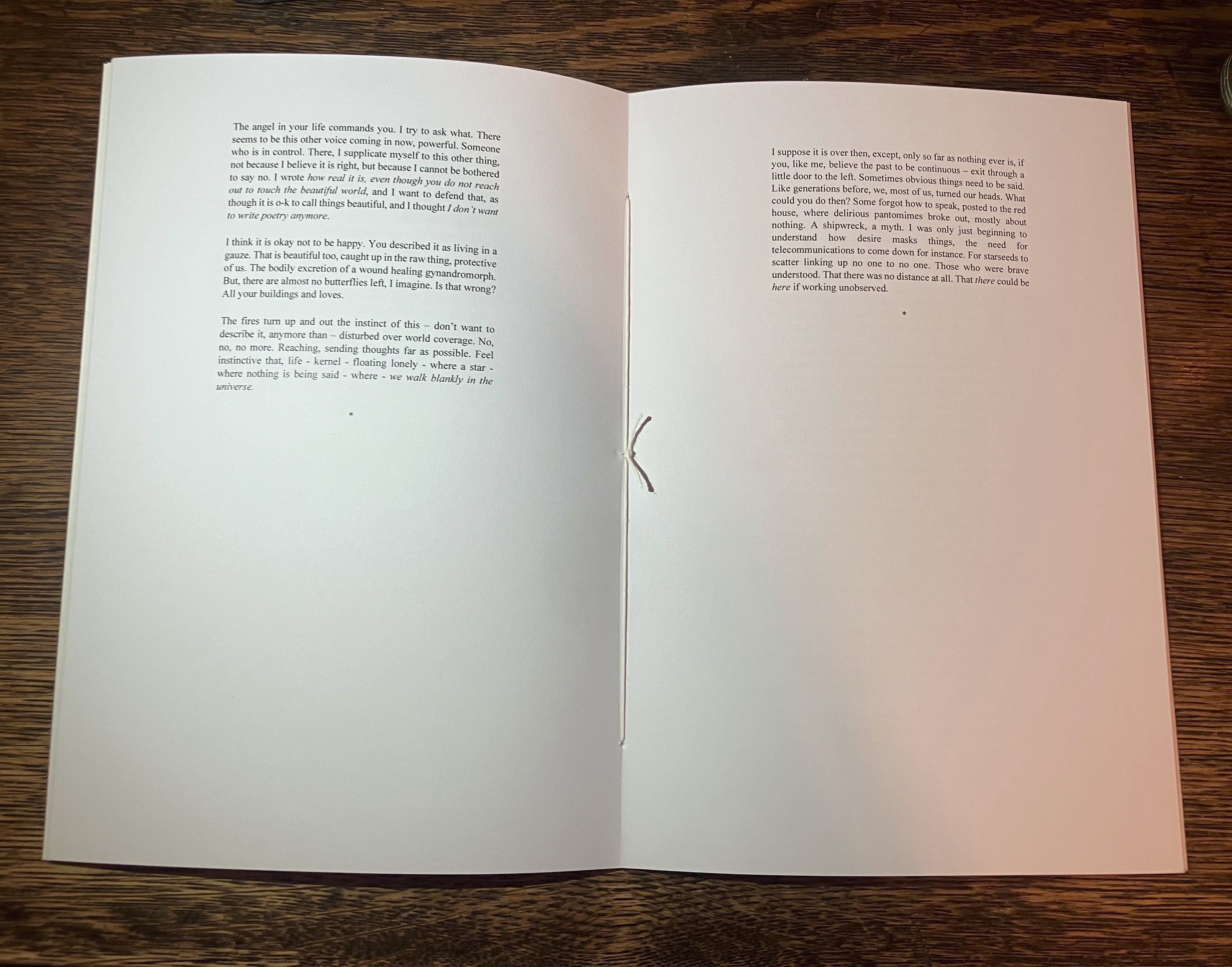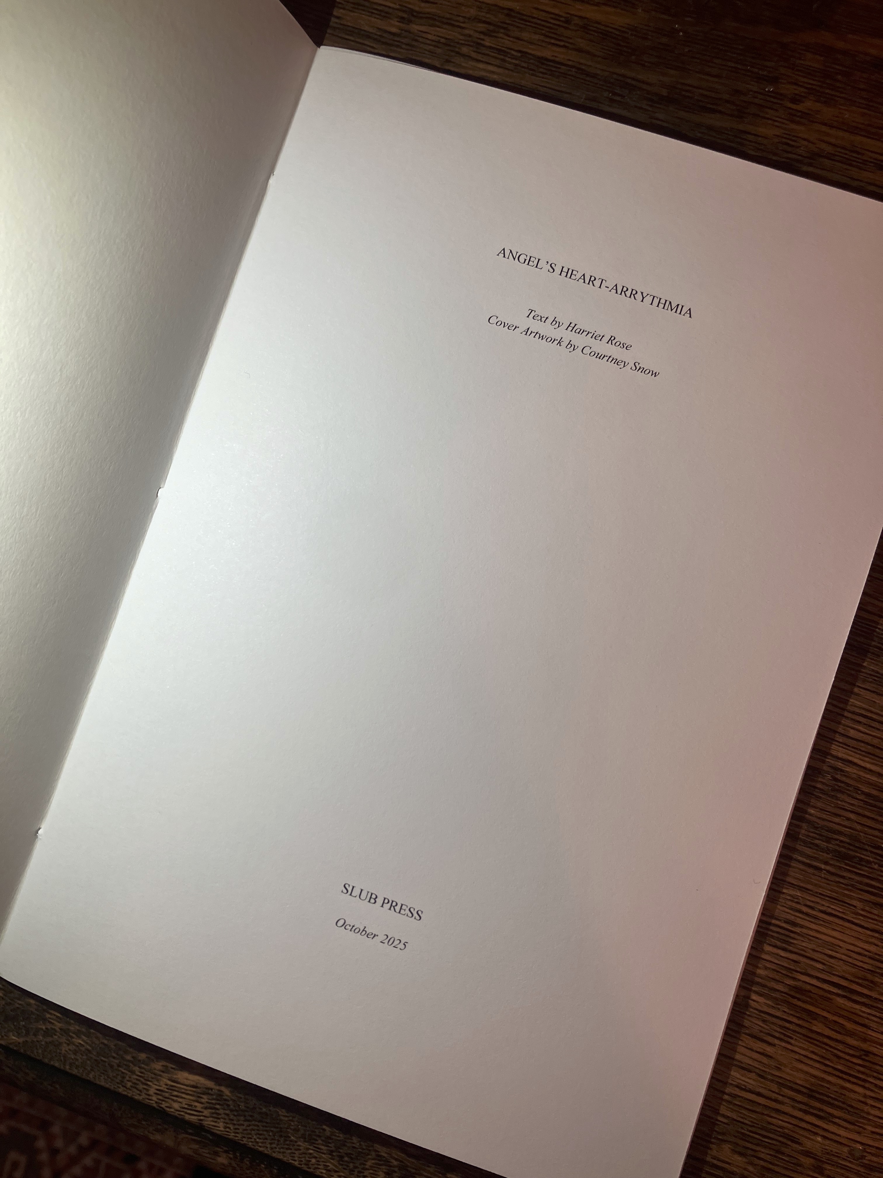 In Angel’s Heart-Arrythmia Harriet Rose approaches being in a distance, together there where you are not, and speaks to it, that is to you, to you and I, cherished room the wind sings through where you are gone, and I, and I… Each poem like a letter found here, at once read and unread as one is, and another, and another… The poem is a softly beating thing that feathers death, with breathing and proximity, a mundane and fantastical intimate… how to fathom the inextricable sky when you are torn from what within it’s also you. You are walking through it, there -