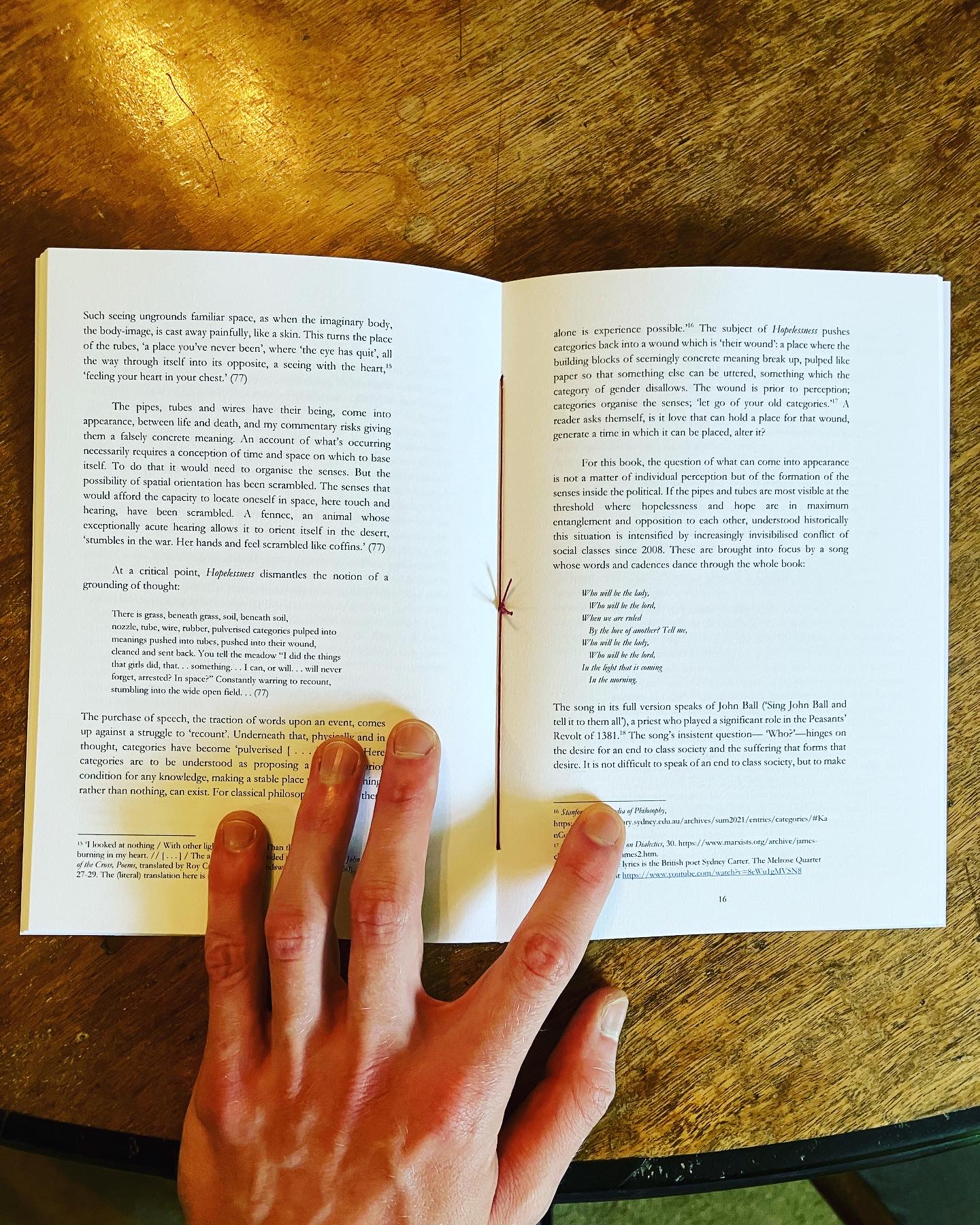 William Rowe, in ‘Seeing Against Fascism’ - an emotive, vital essay on Verity Spott’s Hopelessness (the87press, 2020) - is our guide here, probing this strange liminal, pulling up the grass-like epidermis to reveal the strange, familiar parts and machinations of the soul, nigh corrupted by an accursed milieu - a sordid tapestry of patriotic parasitism, wrong wealth, that would void us of ourselves. This soul that, in spite of its affliction, continues: “The struggle of ‘on’”, on, on, on… o how mundane this arrested miracle! o the subject! o hopeless, composite shades! mon frère!